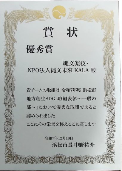 2025年12月18日、「令和7年度 浜松市地方創生SDGs取組表彰 一般の部」において優秀賞をいただきました。